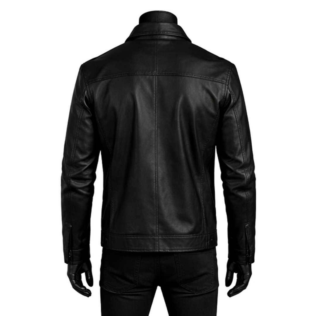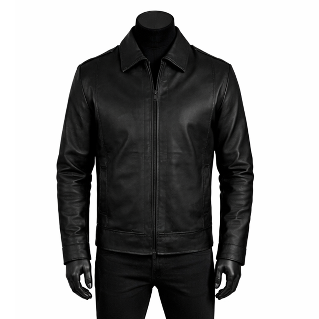 Built for comfort and practicality, this Classic Plain Black Leather Jacket Minimal Style Front Zip features a soft inner lining that ensures ease throughout the day. The front zipper closure provides a secure fit, while functional pockets allow you to carry daily essentials conveniently. Its tailored structure suits different body types and offers a modern fit without compromising movement. Designed for all-season use, this coat is perfect for daily wear, outings, or evening events. A true wardrobe staple, it combines simplicity, durability, and long-lasting style in one premium piece.