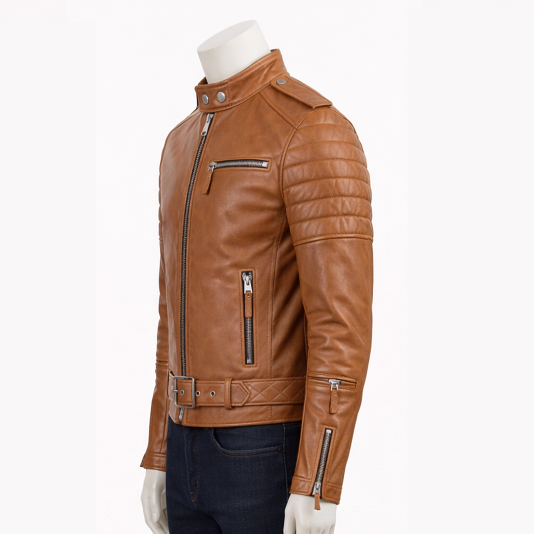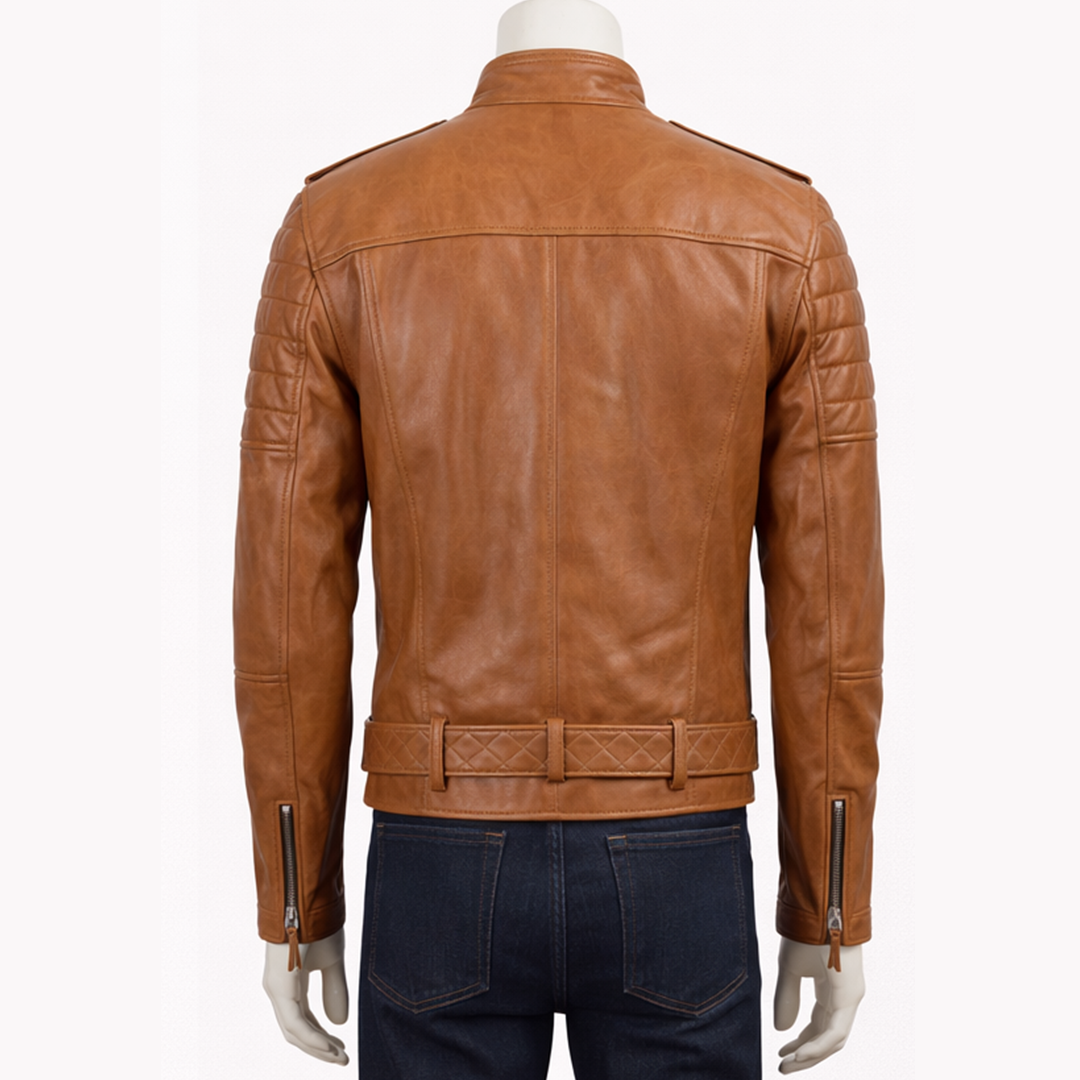 Built for comfort and practicality, this Men Classic Slim Fit Moto Biker Leather Jacket comes with a soft inner lining that provides ease throughout the day. The front zipper closure ensures a secure fit, while multiple pockets offer convenient storage for essentials. Designed with signature biker elements like zippered cuffs and a fitted structure, it balances style with function. Whether you’re heading out casually or dressing up for an evening, this jacket adapts effortlessly to any occasion. Durable, stylish, and easy to pair, it is an essential piece for men who appreciate modern biker fashion.