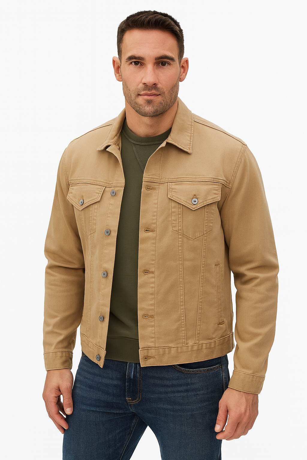 Whether you go on a road trip, an informal outing, or an evening out, this Men’s Brown Cotton Denim Jacket. Completes your men’s style. It has several functional pockets, and a soft cotton lining which adds an extra layer of comfort. The strong denims content ensures durability, and the versatile brown shade makes it appropriate for all seasons. You can perform the layer to a relaxed, simple look on a t-shirt or a hoodie, or dress it up with shoes for a striking, masculine look. Step out with confidence and leave a lasting impression in this brown cotton denim jacket. It is an essential addition to every modern man’s wardrobe.