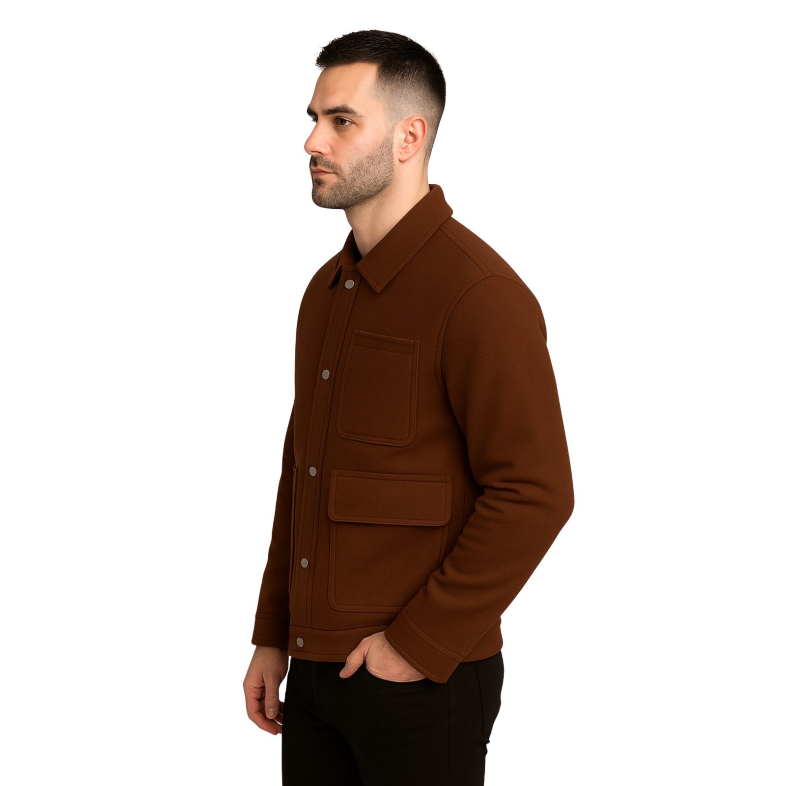 The casual Men’s Brown Fleece Jacket combines an elegant and functional design for everyday attire. The full zip closure allows for easy adjustments and the high-throat collar protects against biting winds. The soft inner fleece lining and long-lasting seams provide warmth and enduring comfort respectively. The functional side pockets are strategically placed to store essentials. This jacket aesthetically balances classic functionality. It is suited for late autumn or early winter outdoor casual activities as well as for informal outings. This fleece jacket provides ease of movement and comfort, making it an outstanding piece in the men’s collection.