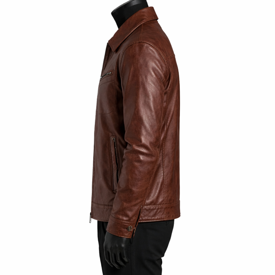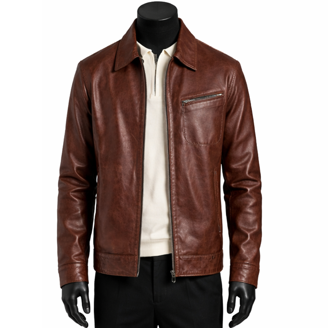 Built for comfort and durability, this Men’s Shirt Style Casual Brown Leather Jacket includes a soft inner lining that ensures all-day ease. The front zipper or button closure provides a secure and structured fit, while functional pockets add practicality for daily essentials. Its tailored silhouette enhances body shape without restricting movement, making it ideal for regular wear, travel, or evening outings. Designed for modern men, this jacket combines simplicity, comfort, and long-lasting quality in one essential wardrobe piece. Whether styled with a plain t-shirt or a formal shirt, it delivers a confident and polished look every time.