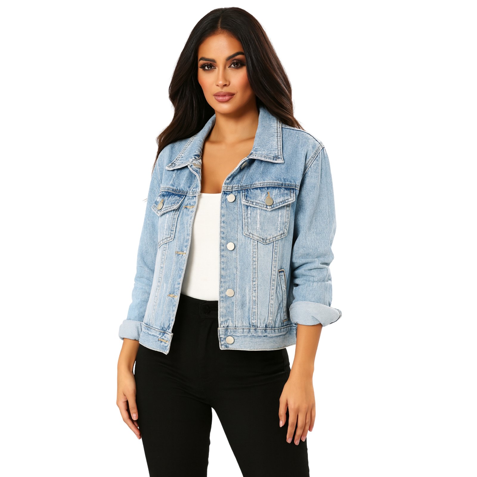The genuine Women’s Blue Denim Cotton Jacket. Guarantees both style and durability, timelessness and classic. The fabric and the denim jacket are a combination in designing comfort and style. The fabric provides and guarantees comfort and keeps the wearer at ease. The blend of the cotton with a hoodie in the winter and the t-shirt in the summer make shifting of the outfit frequent and easy. The timeless classic denim winter jacket is a capsule in the wardrobe. The fabric and the jacket design and style are all classic. Freedom is comfortable in this capsule and style, while street classic.