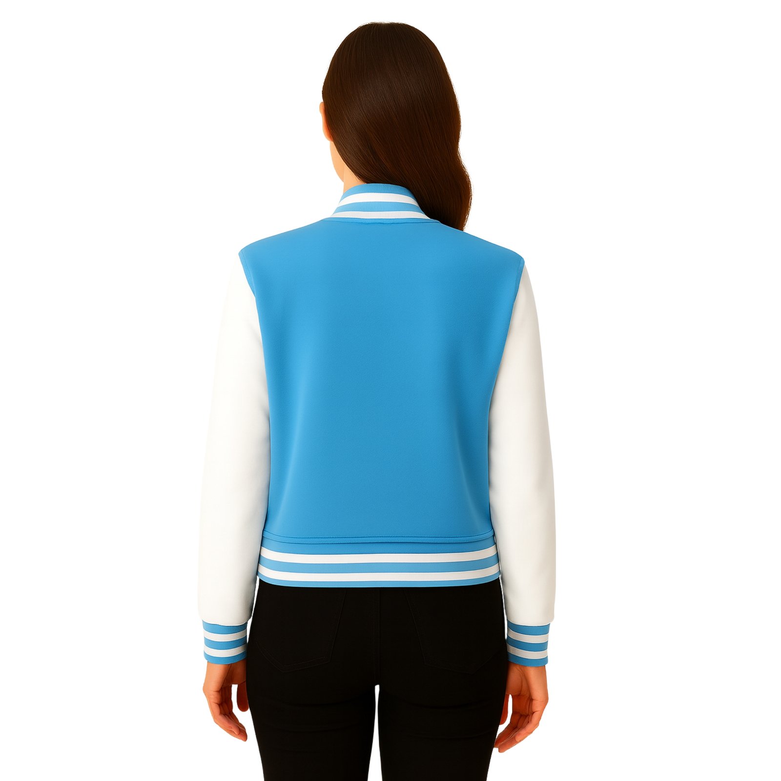 Sky Blue Wool Letterman Varsity Jacket For Women.